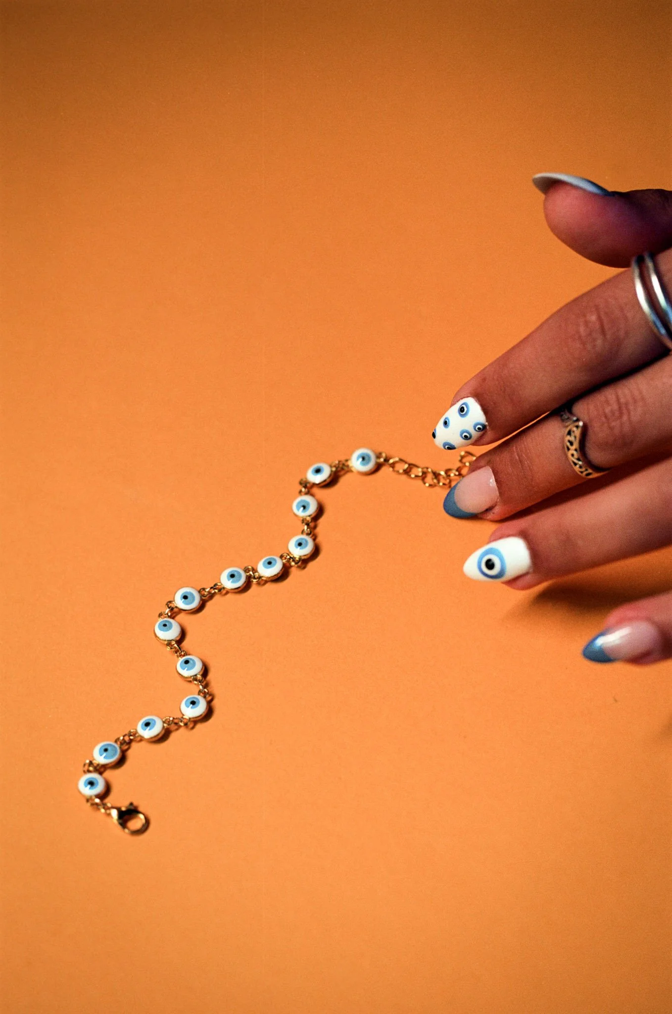 “Atchk” in Armenian refers to the evil eye and is used as protection against negative energy and misfortune. Atchk can often be found hanging in many SWANA homes, in our cars, pinned to a baby’s diaper, tucked in a jacket pocket, and adorning our bodies in various fashions. Each year at the St. Vartan’s Armenian Bazaar in Oakland, Mom and Grandma would let my sister and I pick out a piece of jewelry. It was always so difficult to choose just one but I often went home with an atchk bracelet. Decades later, I sourced a collection of colorful atchk beads and charms from Greece, constructed a line of earrings and bracelets, and launched them at the same bazaar I grew up attending so many years prior.